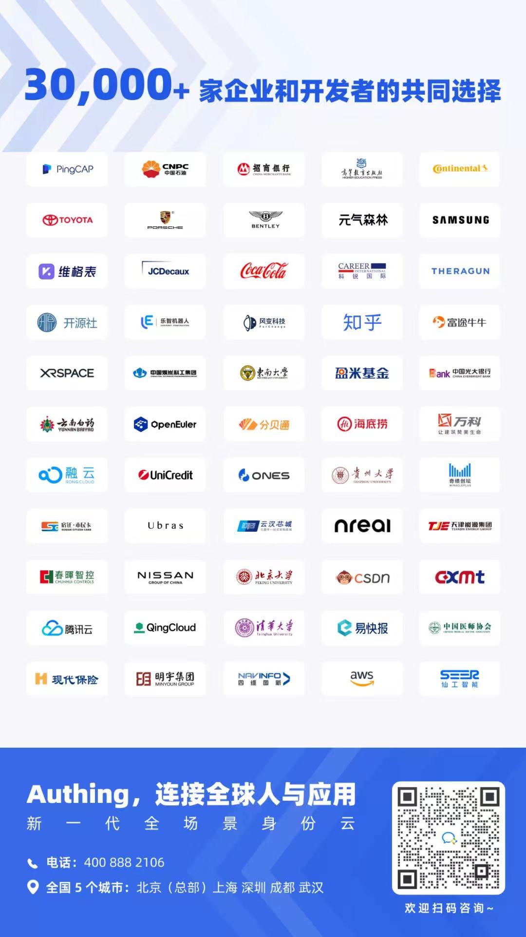 Authing 目前已经服务包括可口可乐、三星集团、中国石油、元气森林在内的 30000+ 企业和开发者。