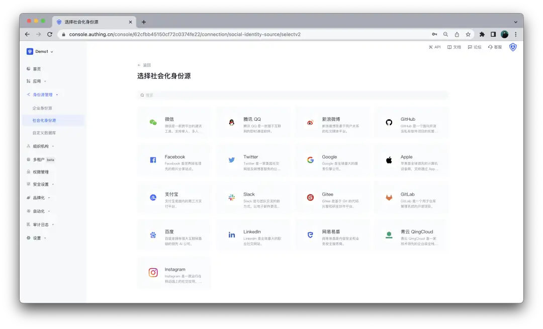 2.一键配置 20+ 第三方登录方式,包含国内外最常见的社交登录等应用。以及覆盖全场景的微信生态登录解决方案。