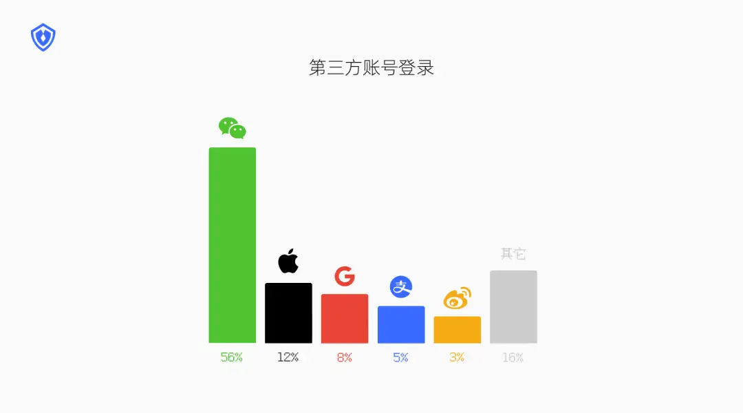 第三方登录是目前每个登录系统必备的选项,它不仅能帮助用户省去繁琐的注册流程,最重要的是,可以通过设置合理的社会化登录方式来精进你的客群画像,从而更精准的营销。通过社会化登录我们可以多维度了解客群画像,例如登录方式图谱(下图)、个性化营销、留存转化率分析等等。